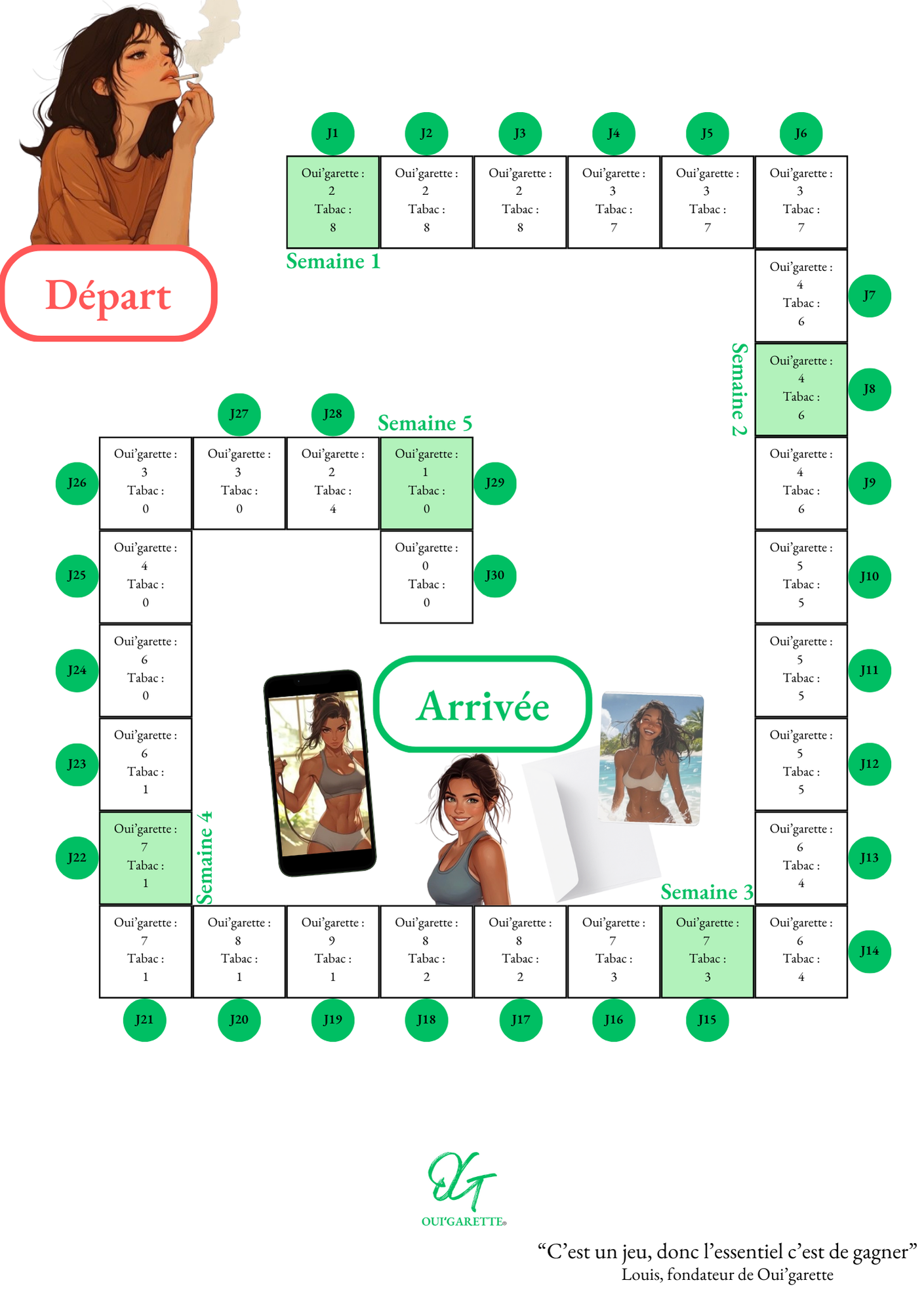 - Puis on réduit aussi Oui'garette... jusqu’à atteindre 0 cigarette avec tabac et 0 cigarette sans tabac