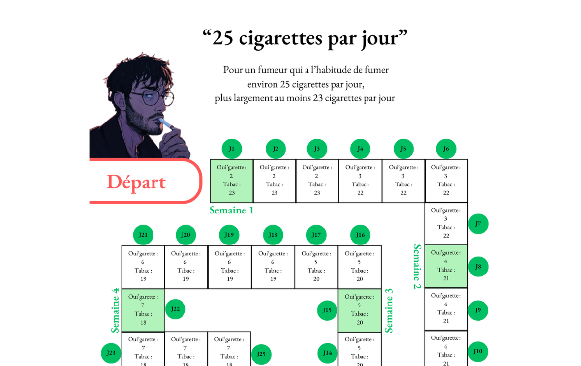 🎲 Programme SOUS FORME DE JEU pour réduire votre consommation de tabac si vous consommez environ 25 cigarettes avec tabac par jour (Arrondir à 25 et choisissez ce pack si vous consommez 23, 24, ou plus de 25 cigarettes par jour)